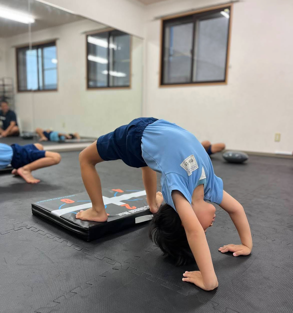 現在は、茨城県つくば市のつくば研究学園校と千葉県流山市の流山おおたかの森校の2校で体操体幹トレーニングのレッスンをおこなっています。